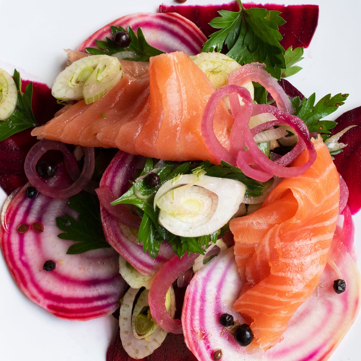 Web Salmon is a go-to Christmas starter but try switching slices of the smoked stuff for a neat and colourful tartare.